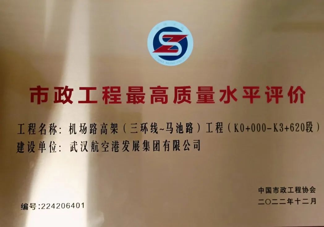 喜訊|機(jī)場路高架工程榮獲市政工程最高質(zhì)量水平評價!